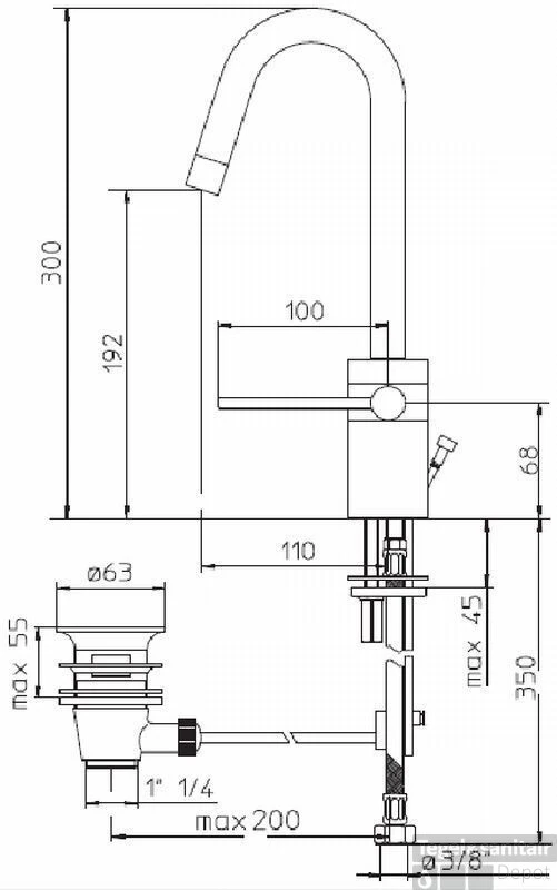 Wastafelkraan uitloop 30,5 cm. hoog met waste