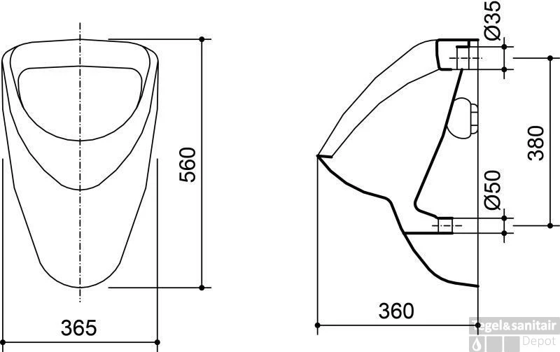 Urinoir achteraansluiting