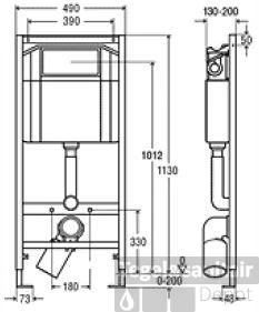 Inbouwreservoir frontbediening 113x49cm.3/9 ltr.