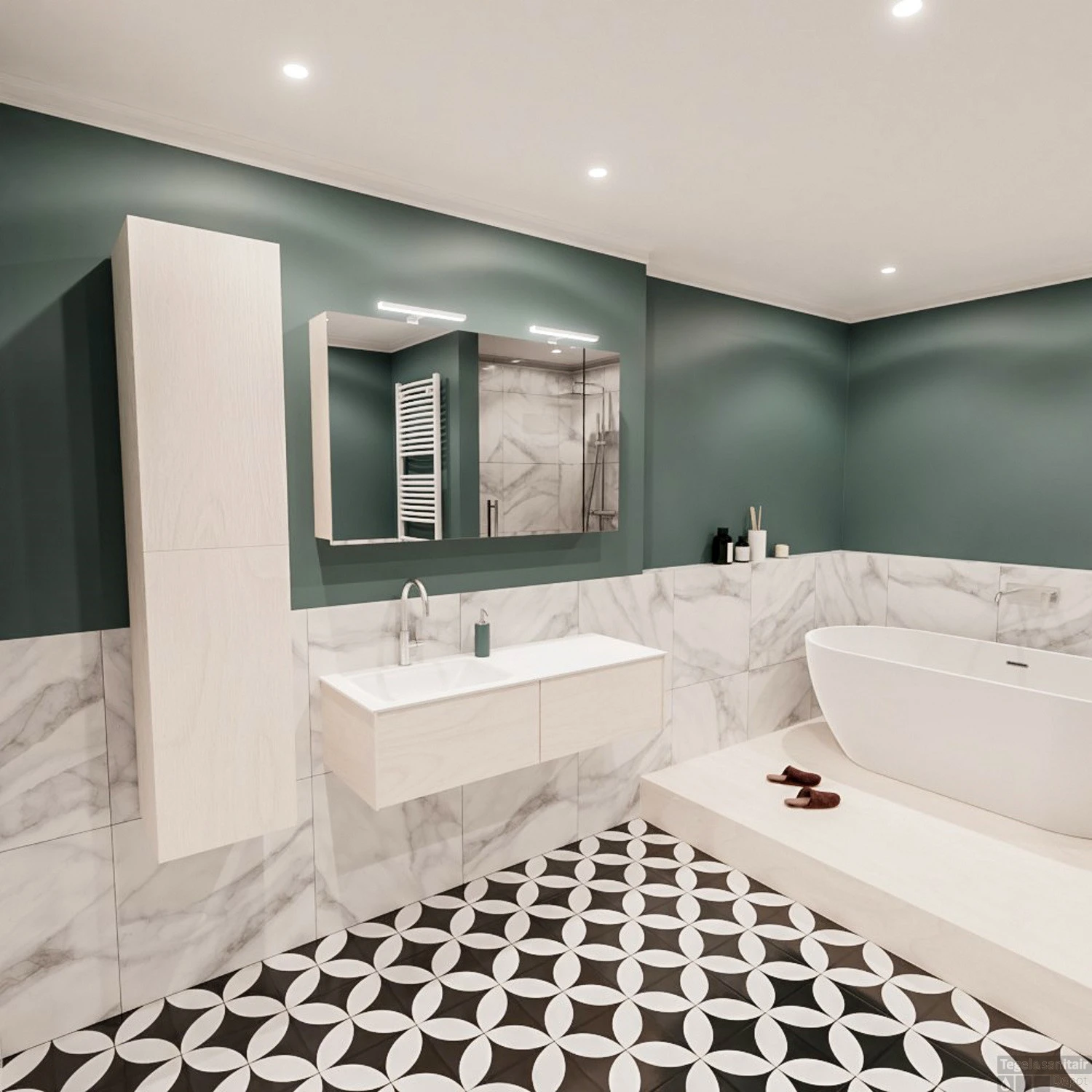 Het Madrid badkamermeubel is van ons eigen merk Boss & Wessing en is een stijlvolle toevoeging aan uw badkamerruimte. Het meubel wordt standaard geleverd met een onderkast en een bijpassende wastafel. De onderkast heeft een breedte van 120 cm, een diepte van 45 cm en een hoogte van 30 cm en dient aan de muur bevestigd te worden. De kast is gemaakt van melamine en afgewerkt in een witte kleur. De onderkast is uitgerust met twee lades waarin u diverse badkamerartikelen kwijt kunt.