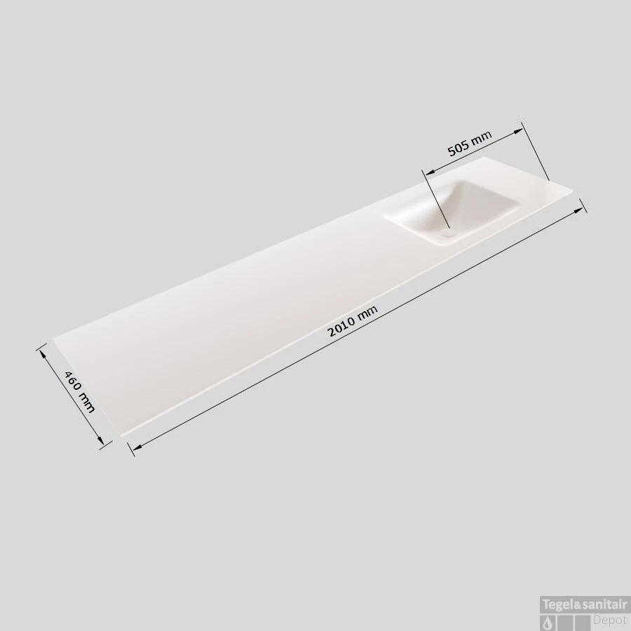 Het badmeubel bestaat uit een Solid Surface wastafel en een MDF onderkast. De Solid Surface wastafel is mat wit van kleur. Solid Surface is uitstekend geschikt om sanitaire producten van te maken omdat het geen poriën en naden heeft. Solid Surface is een composiet, geproduceerd uit mineralen en harsen. Bovendien is dit materiaal bestendig tegen vocht, vlekken, en zelfs chemische stoffen. Er trekt dus niets in, is niet poreus en heeft een intense kleur en is gemakkelijk schoon te houden.