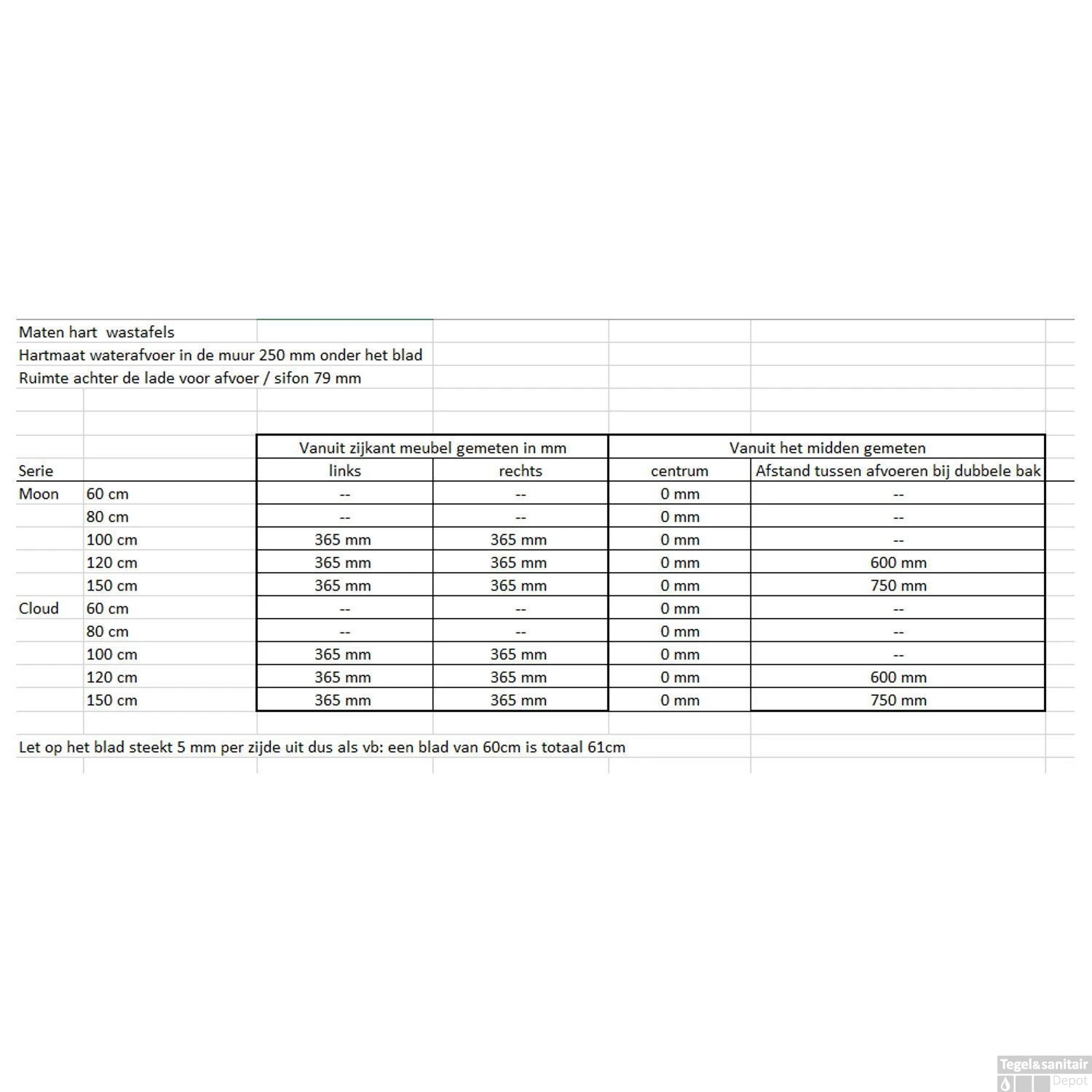 De onderkast is gemaakt van MDF. De planken zijn gespoten in de kleuren mat wit, antraciet, wood dark brown of wood washed oak. Doordat het gespoten is, is het meubel uitstekend geschikt voor in vochtige ruimtes. De kast is voorzien van 2 softclose lades. Softclose staat voor een geleider systeem wat speciaal is ontwikkeld voor het zacht sluiten van laden. De ladegeleider sluit de laatste paar cm rustig en gedempt. In beide lades is zit geen sifon uitsparing. Daarom dient u te werken met een ruimtebesparend sifon.