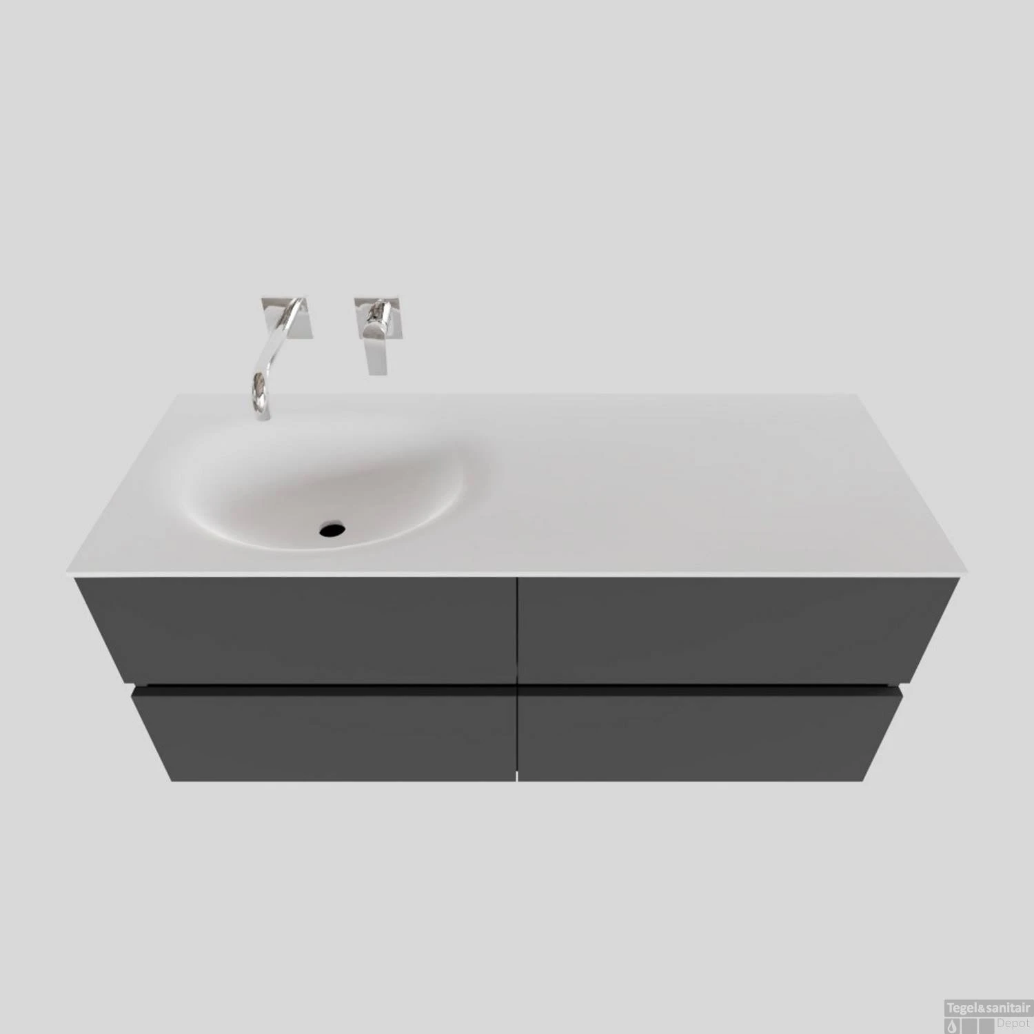 Badkamermeubel Solid Surface BWS Stockholm 120×46 cm Links Mat Antraciet 4 Laden (zonder kraangat)