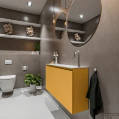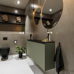 MONDIAZ OLAN 80cm Toiletmeubel Light Brown Grey. LEX Wastafel Talc Midden 1 Kraangat