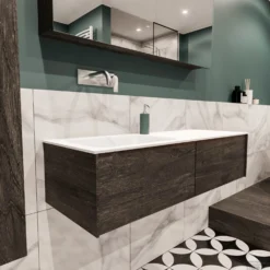 Badkamermeubel BWS Madrid Antraciet 120x45x30 Cm Mat Witte Solid Surface Wastafel (1 Kraangat)