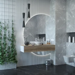 Badkamermeubelset Gliss Design Anelius 80cm Grey Oak (Keuze Uit Wastafel, Kraangaten & Spiegel)