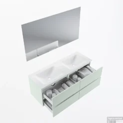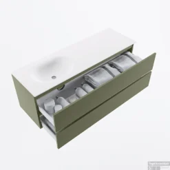 MONDIAZ VICA 140cm Badmeubel Onderkast Army 2 Lades. Wastafel MOON Links 1 Kraangat, Kleur Talc.