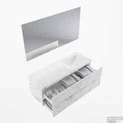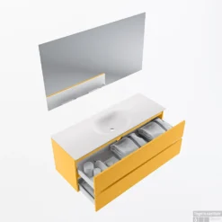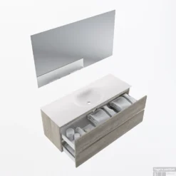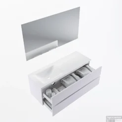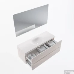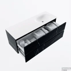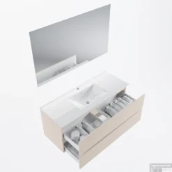 MONDIAZ VICA 130cm Badmeubel Onderkast Plata 2 Lades. Wastafel CLOUD Rechts 1 Kraangat, Kleur Talc.