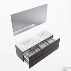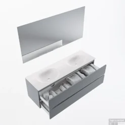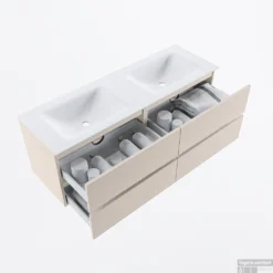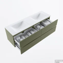MONDIAZ VICA 150cm Badmeubel Onderkast Army 4 Lades. Wastafel CLOUD Dubbel 2 Kraangaten, Kleur Talc.