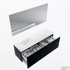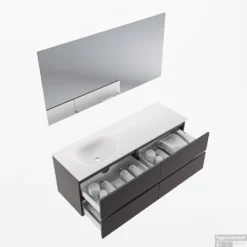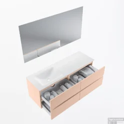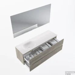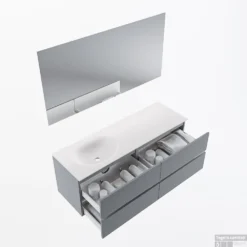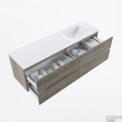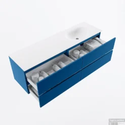MONDIAZ VICA 160cm Badmeubel Onderkast Jeans 4 Lades. Wastafel MOON Rechts 1 Kraangat, Kleur Talc.