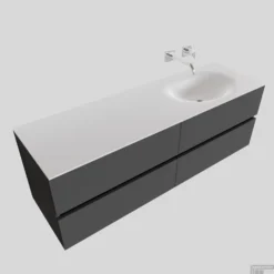 Badkamermeubel Solid Surface BWS Stockholm 150×46 Cm Rechts Mat Groen 4 Laden (zonder Kraangaten)