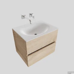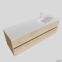 Badkamermeubel Solid Surface BWS Stockholm 150×46 Cm Rechts Wood Washed Oak (met 1 Kraangat)