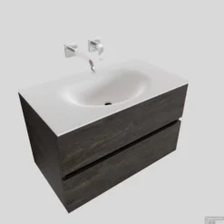 Badkamermeubelset Boss & Wessing Anubis 160cm 2 Laden Grijs Eiken Met Wastafel (Naar Keuze)