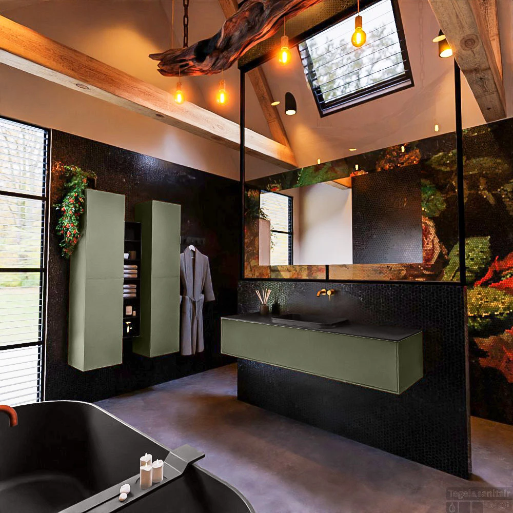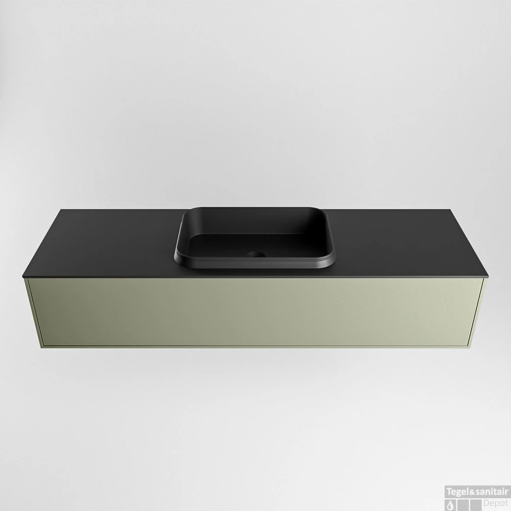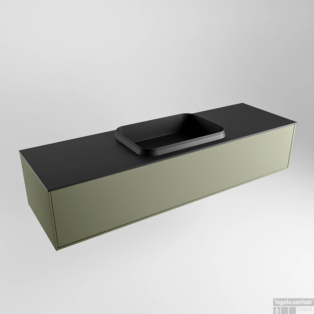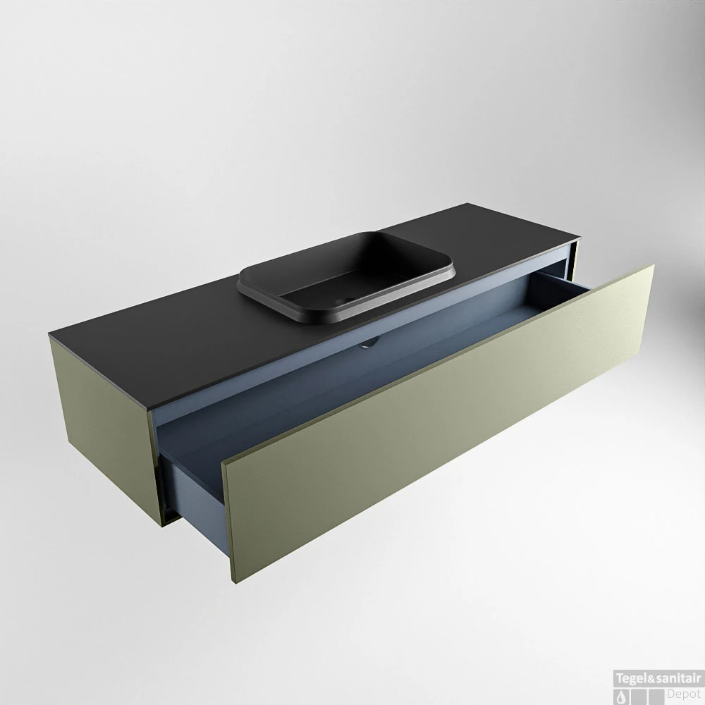 Badkamermeubelset Mondiaz Erin 150 cm met 1 Lade met RIDGE Wastafel Midden Urban Zonder Kraangaten Greeploos Mat Army
