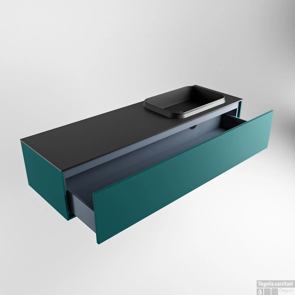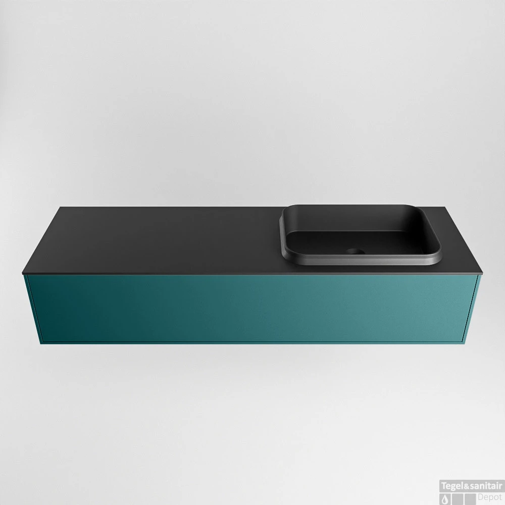 Badkamermeubelset Mondiaz Erin 150 cm met 1 Lade met RIDGE Wastafel Rechts Urban met 1 kraangat Greeploos Mat Smag
