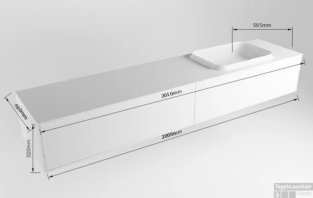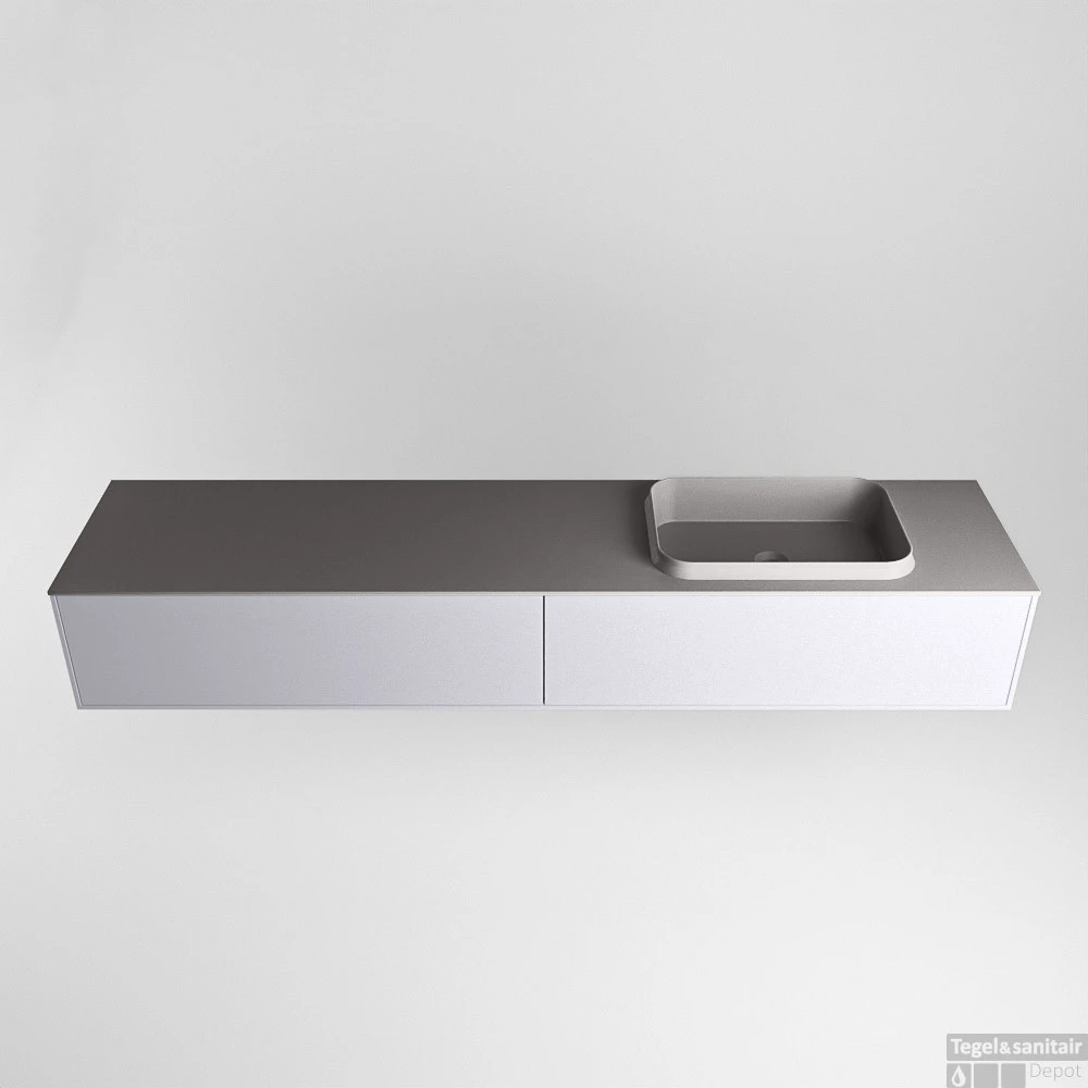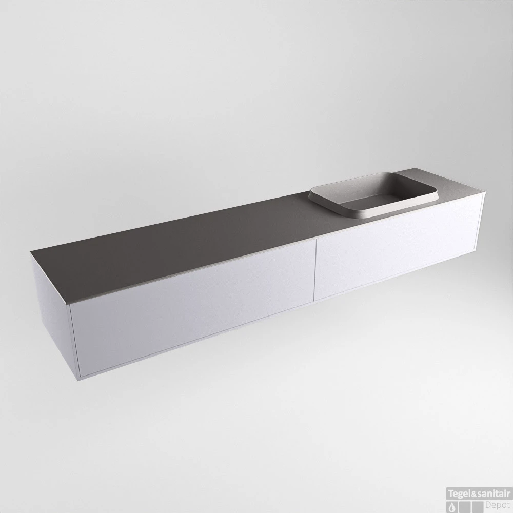 Badkamermeubelset Mondiaz Erin 200 cm met 2 Lades met RIDGE Wastafel Rechts Dark grey met 1 kraangat Greeploos Mat Cale