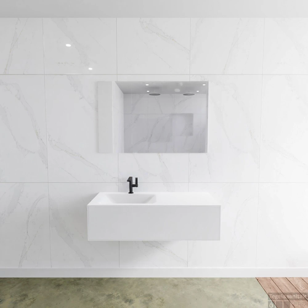 Badkamermeubelset Mondiaz LAGOM 110 cm Linkse Waskom Solid Surface Met 1 Kraangat Mat Wit (1 lade)