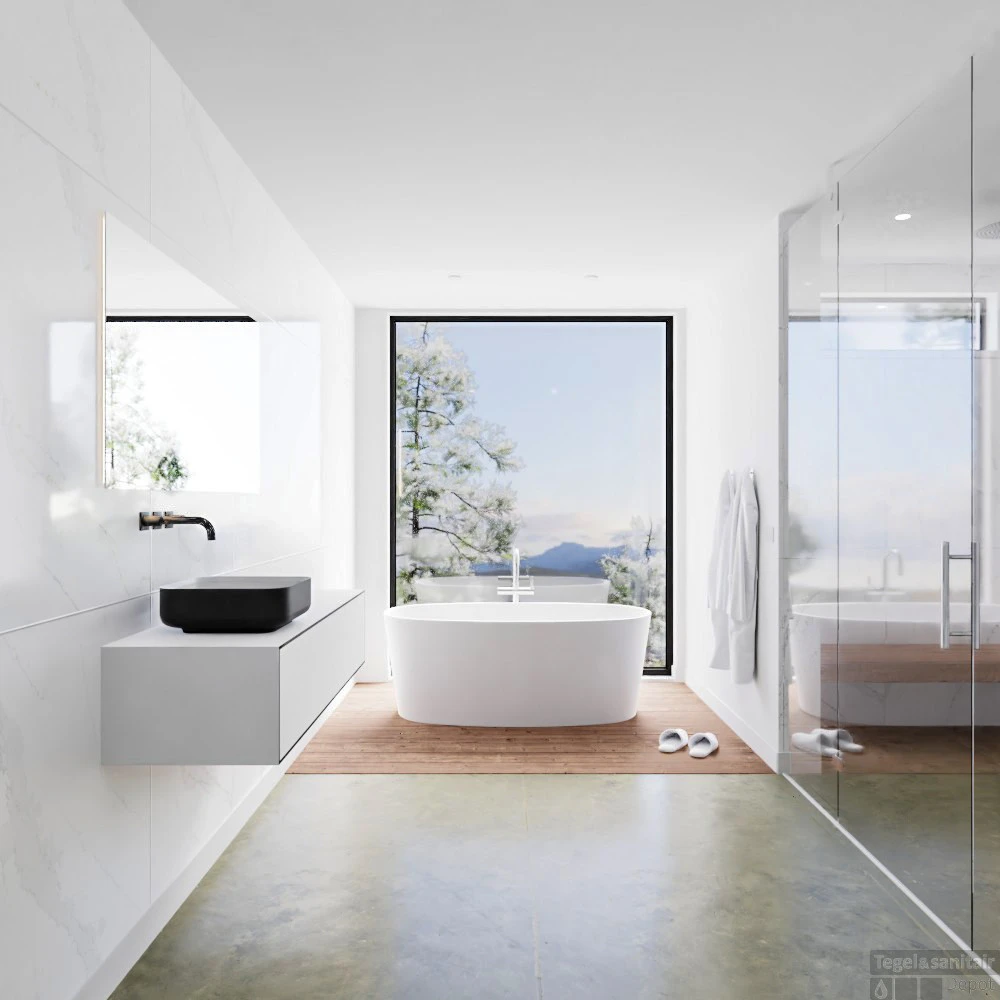 De afmetingen van het badkamermeubel zijn 130x45x30,9 cm. Het badkamermeubel is in verschillende kleuren en afmetingen verkrijgbaar. De opzetkom is in verschillende kleuren en ook met kraangaten verkrijgbaar. Ook is deze set verkrijgbaar met een enkele waskom die rechts of midden geplaatst kan worden. Daarnaast is deze set ook verkrijgbaar met dubbele waskommen.