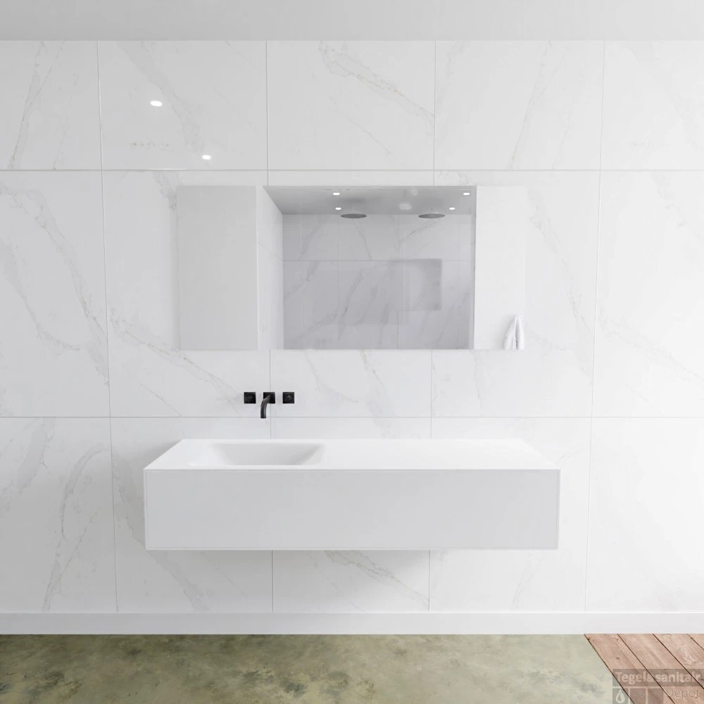 Badkamermeubelset Mondiaz LAGOM 150 cm Linkse Waskom Solid Zonder Kraangaten Mat Wit (1 lade)