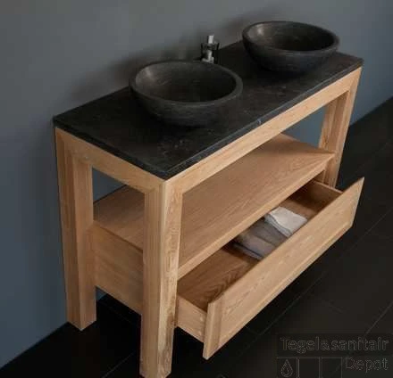 Badkamermeubelset Sanilux Robusta Dynasty 120x47x85 cm Massief Eikenhout en Ronde Waskom