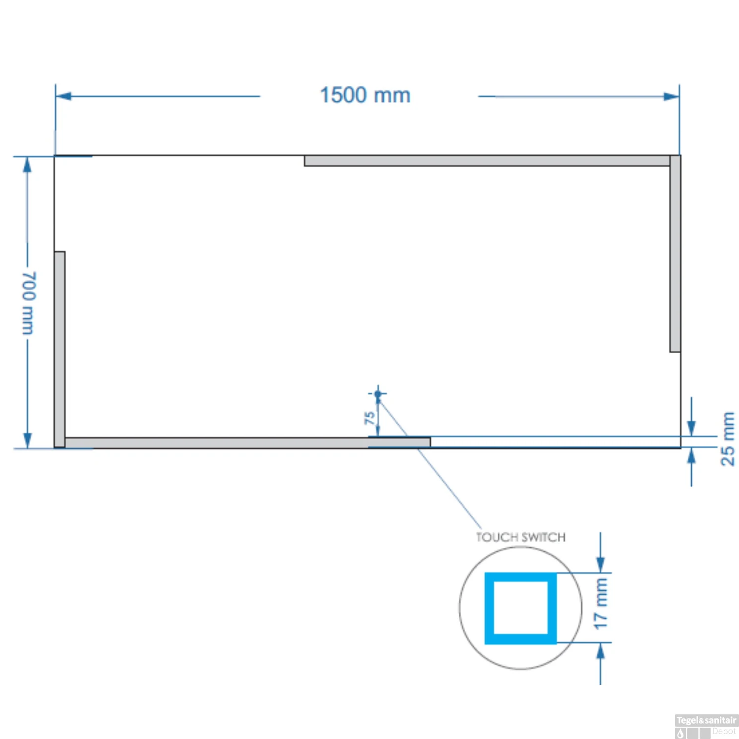 Deze knallende spiegel van het merk Boss & Wessing staat heel mooi boven uw badmeubel. Het is een rechthoekige spiegel met geïntegreerde LED-verlichting. Zo kunt u uw badkamer extra laten stralen en wordt het een opvallend item in de badkamer. De spiegel heeft een lengte van 150 cm en een hoogte van 70 cm. Daarnaast heeft de LED verlichting in de spiegel een dikte van 2.5 mm. De touchknop die in de spiegel verwerkt zit, is geplaatst op een hoogte van maar liefst 7.5 cm.