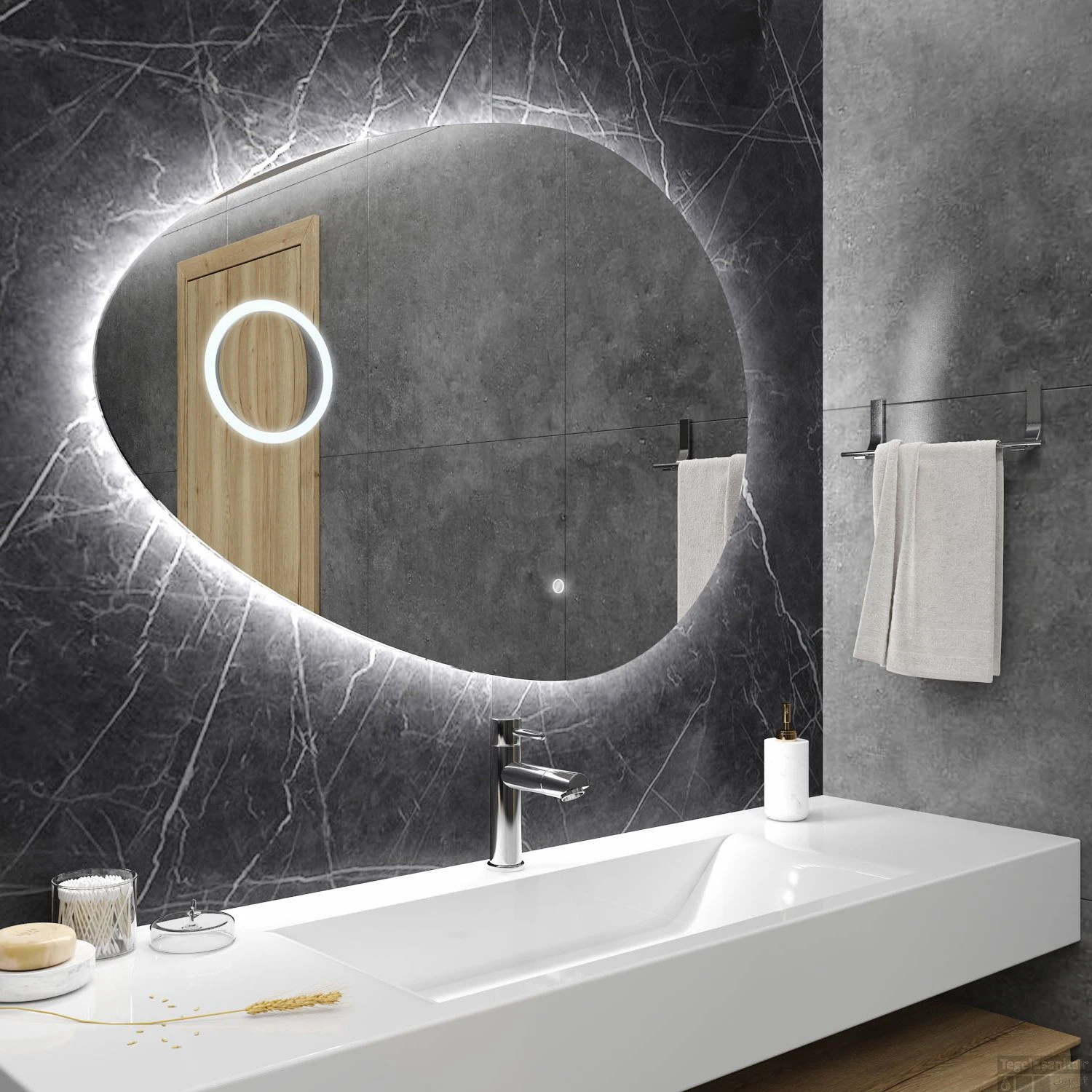 Deze ovale spiegel is van het merk Gliss Design en is een absolute aanwinst voor uw badkamer. De spiegel komt uit de serie Atlas en het bijzondere van deze spiegel is dat het een prachtige vorm heeft en u extra verlichting in uw badkamer geeft. De spiegel beschikt over “backlight” verlichting, wat inhoudt dat de verlichting over de rand van de spiegel en op de muur schijnt. De spiegel heeft een geïntegreerde scheerspiegel in de spiegel zitten die maar liefst tot 9x inzoomt.