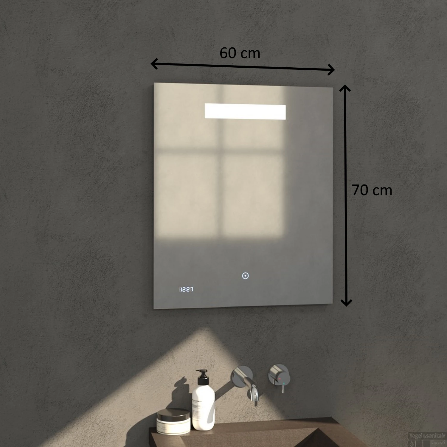 Badkamerspiegel met LED Verlichting Sanitop Clock 60×70 cm met Digitale Klok en Sensor
