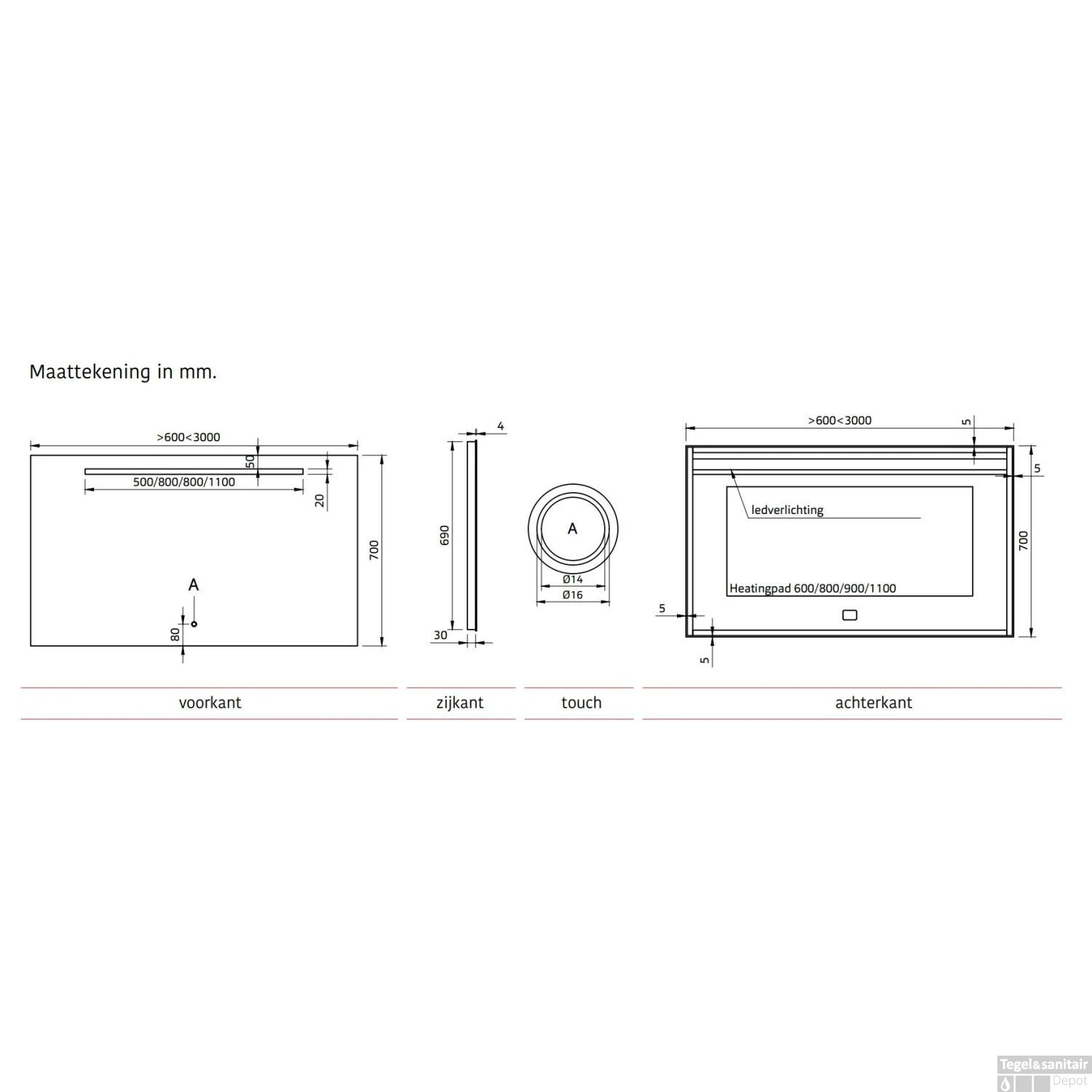 Specificaties Badkamerspiegel Xenz Lazise 60×70 cm met LED Verlichting