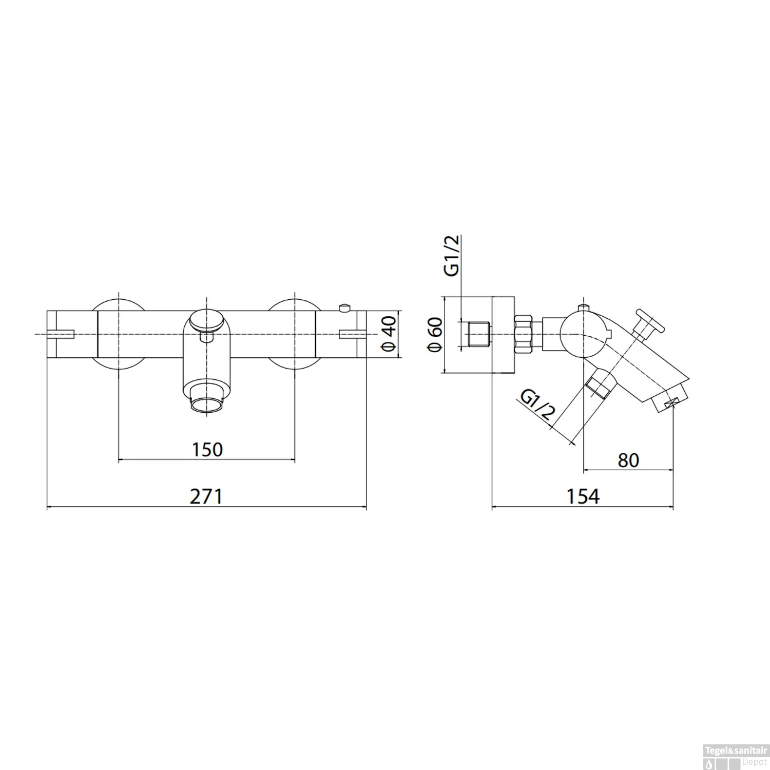 Specificaties van de Boss & Wessing Aloni Design thermostatische badkraan