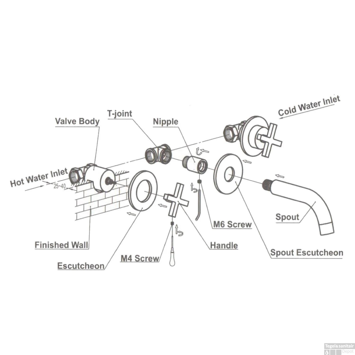 Dit mooie wandmodel wordt compleet geleverd met inbouw- en afbouwdeel. De uitloop heeft een lengte van 16,5 t/m 19 cm. De kraan heeft een 1/2” inch-aansluiting en wordt geleverd inclusief rozetten.