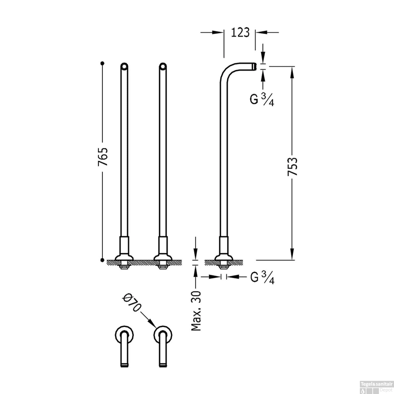Specificaties Badkraankoppelingen Tres Clasic Vrijstaand RVS: