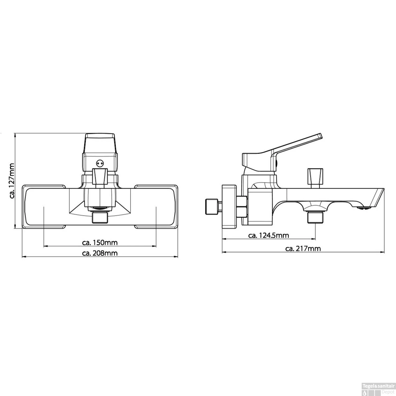 De badkraan heeft een hart-op-hart afstand van 15 cm: houd er rekening mee dat de aansluiting in uw badkamer hetzelfde is. Verder beschikt deze kraan over een verbinding voor een doucheslang met een diameter van circa 1,9 cm (1/2” aansluiting).