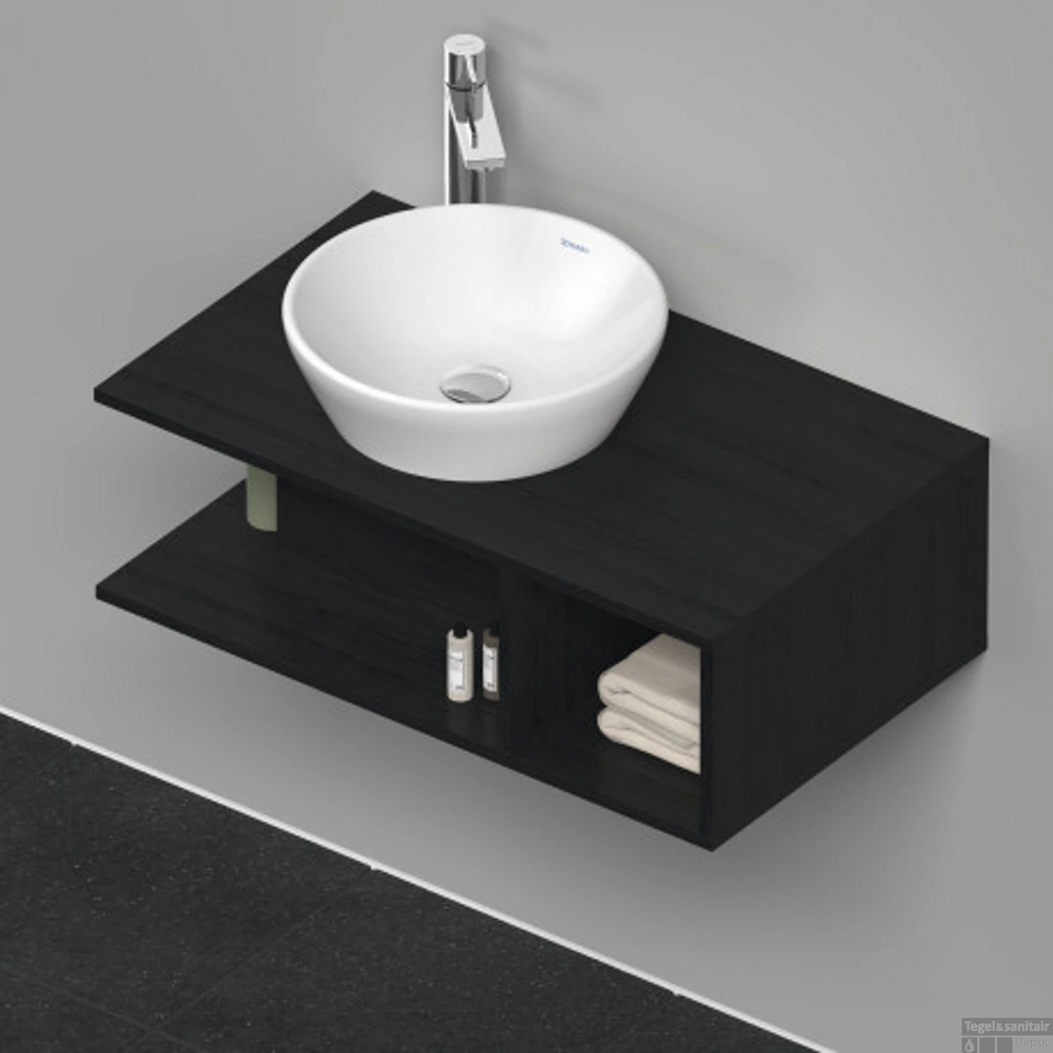 Belangrijk: U dient zelf een wastafel bij te bestellen. We adviseren het badmeubel te combineren met een bijpassende waskom van Duravit. Onderaan de pagina kunt u een bijpassende D-Neo waskom bijbestellen.