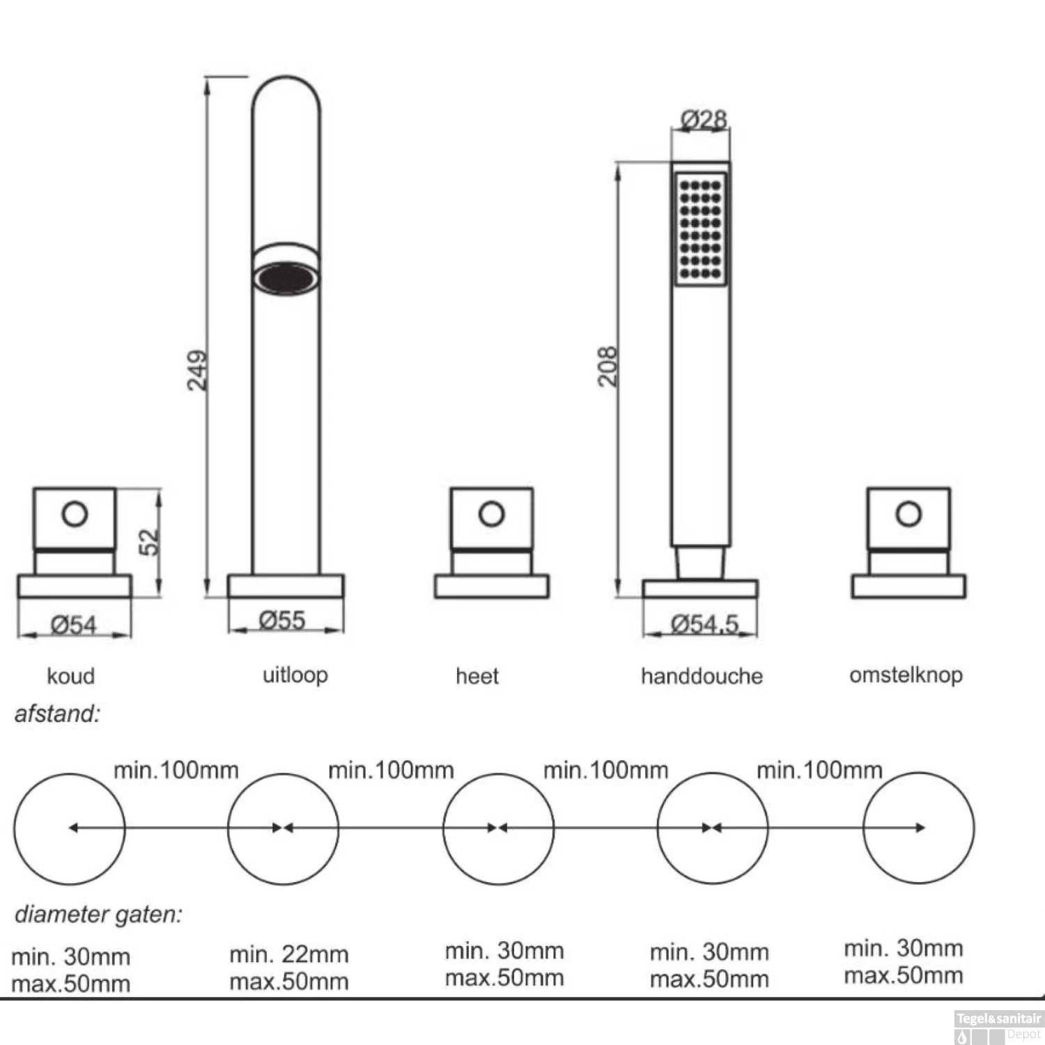 - Badrandkraan combinatie 5-gats