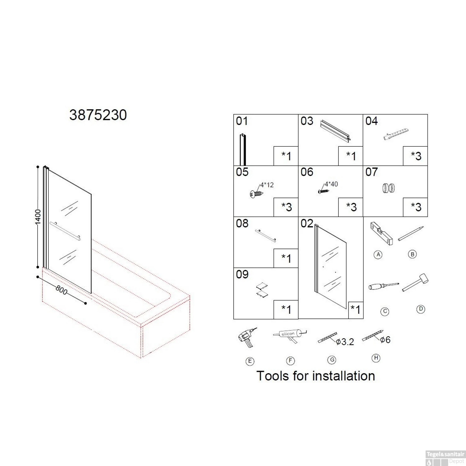 Badwand Best Design Erico 80×140 cm met Handdoekbeugel NANO Veiligheidsglas 6mm