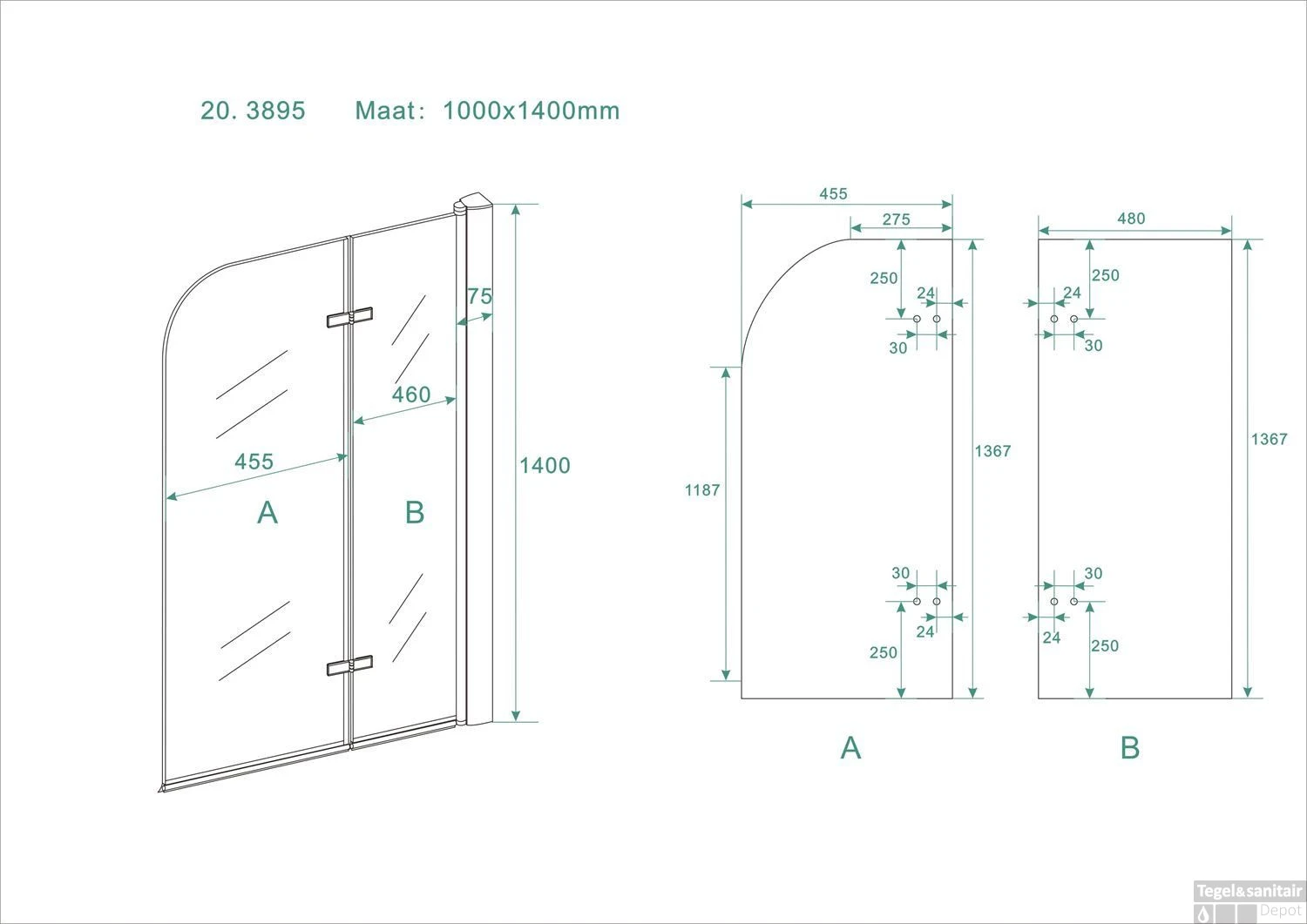 De badwand is gemaakt van 6 mm dik veiligheidsglas. Het glas is voorzien van een NANO antikalk coating, welke beschermt tegen kalk en geeft de douchecabine altijd een glanzende uitstraling. Gebruik geen grove scherpe voorwerpen, zoals schuursponsjes of staalwol om het glas schoon te maken. Daarmee beschadigd u de werking van de coating.