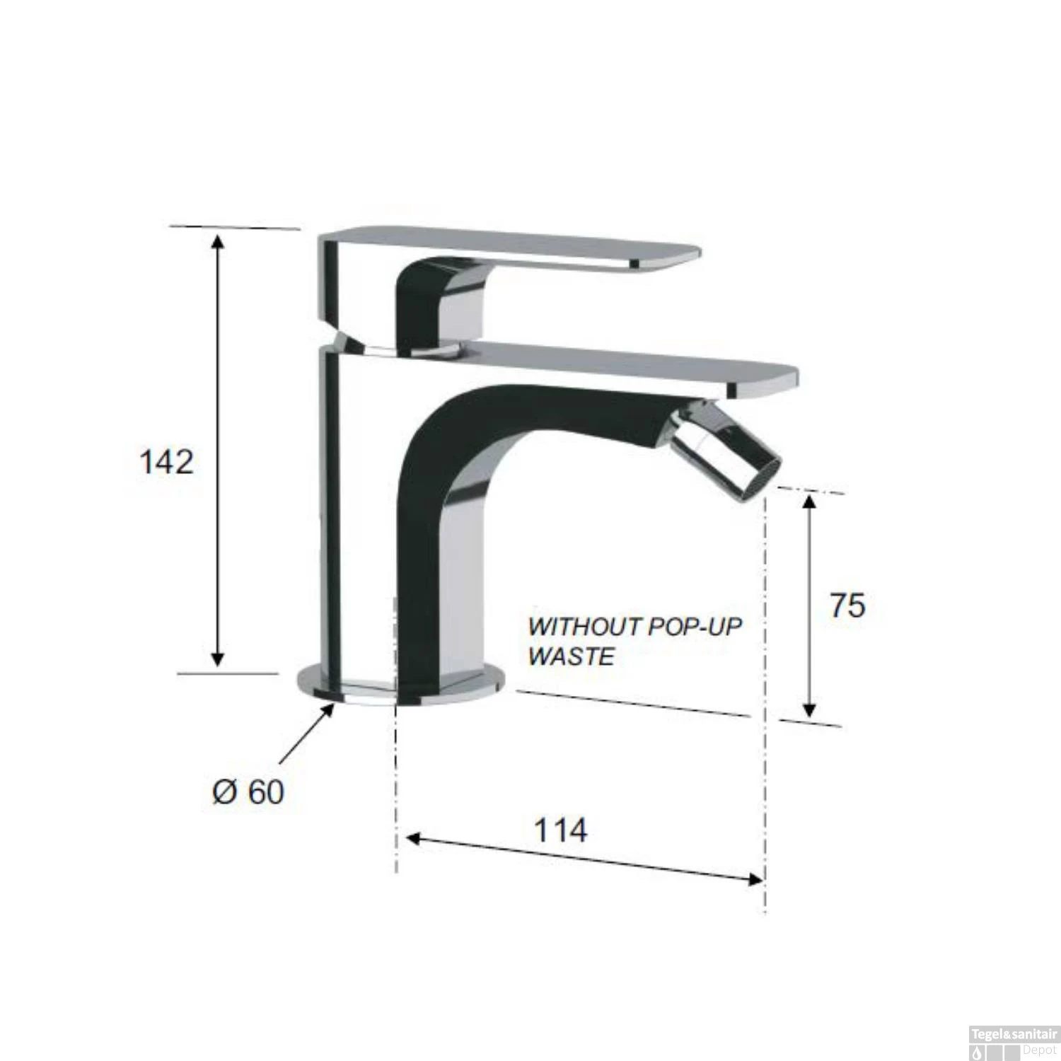 Specificaties Bidetmengkraan 1-hendel 14.2 cm Mat Wit Sapho Spy: