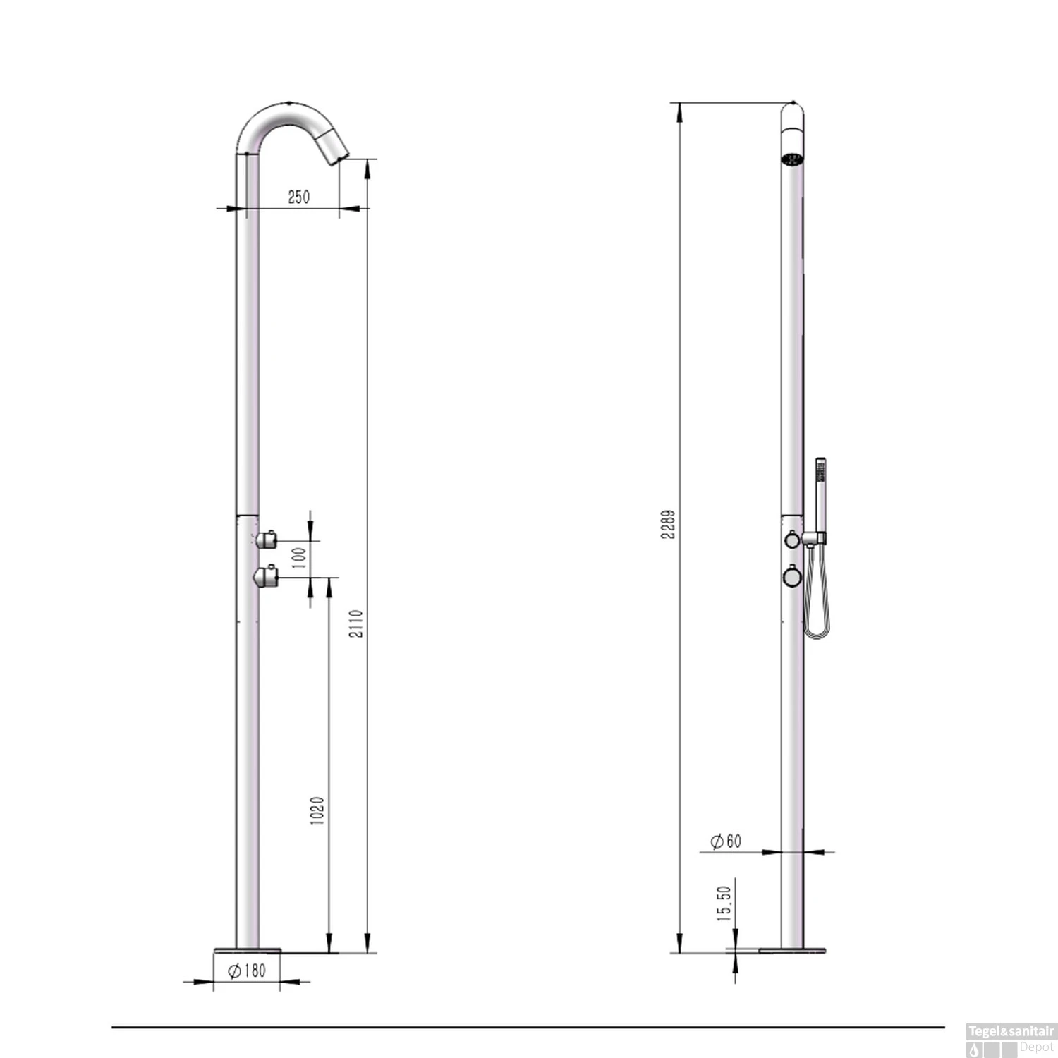 Specificaties Buitendouche BWS Tube Met Handdouche Inclusief Inbouwdeel Zwart 316S: