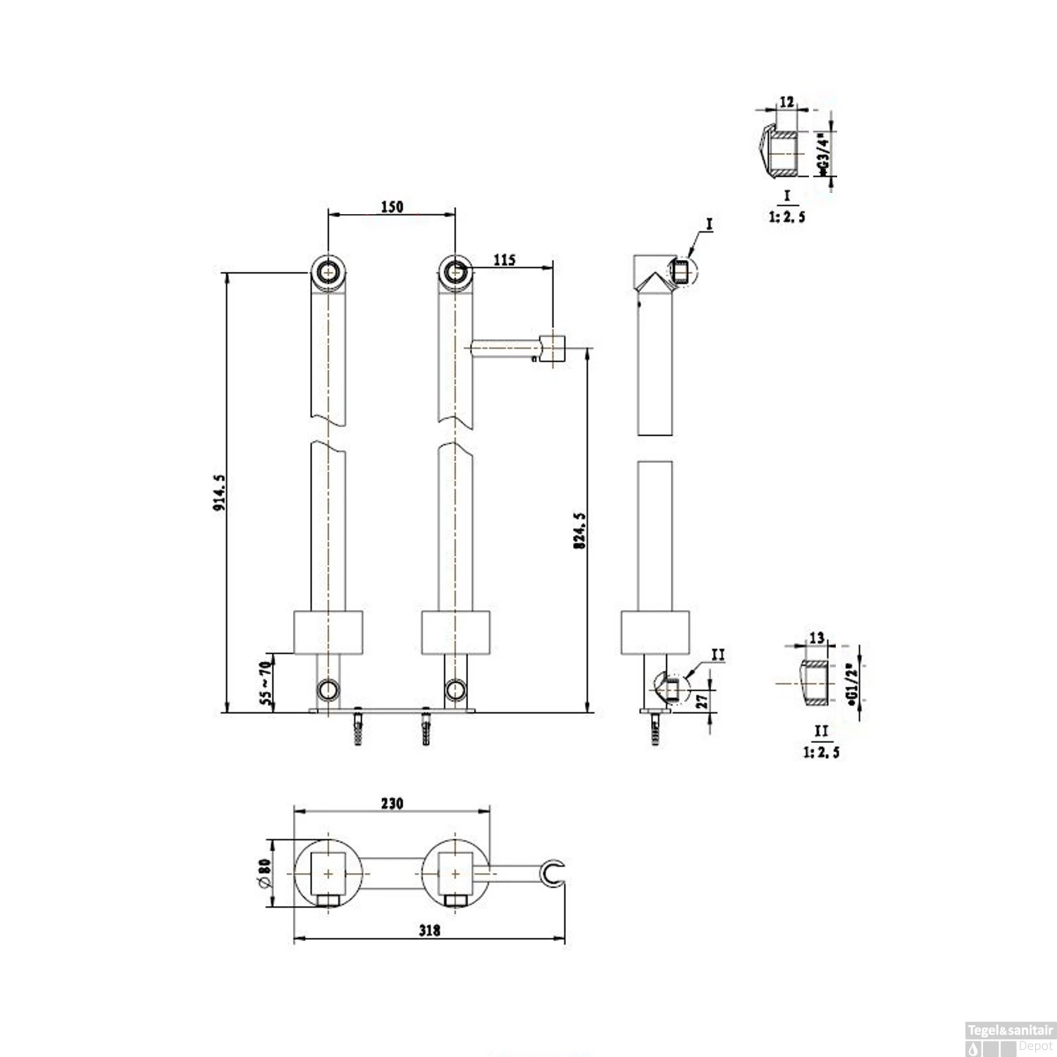 - – 3/4″ kraanaansluitingen