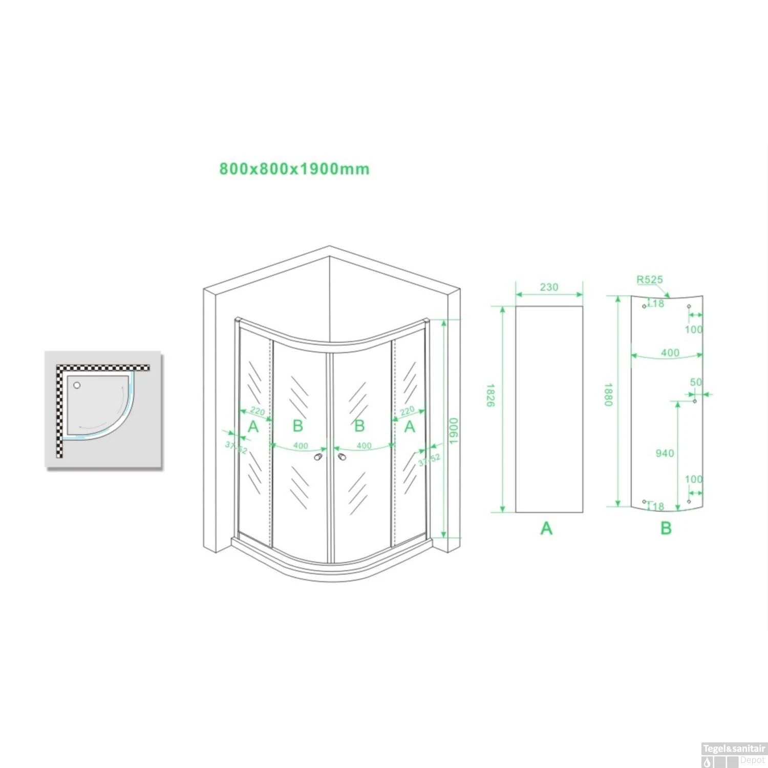Specificaties BWS Kwartronde Douchecabine 80x80x190 cm 5mm