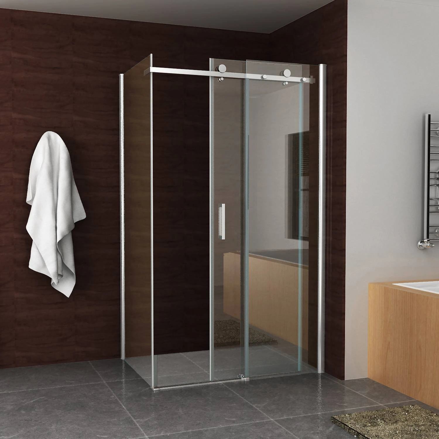 De douchecabine schuifdeur 140x90cm is gemaakt van 8mm veiligheidsglas met als extra een NANO antikalk coating, welke beschermt tegen kalk en geeft de douchecabine altijd een glanzende uitstraling. Is voorzien van een afdek strip die er voor zorgt dat de geschroefde profielen niet meer zichtbaar zijn. De vaste wand heeft aan de onderzijde een deur geleider, zodat de schuifdeur stabiel blijft.
