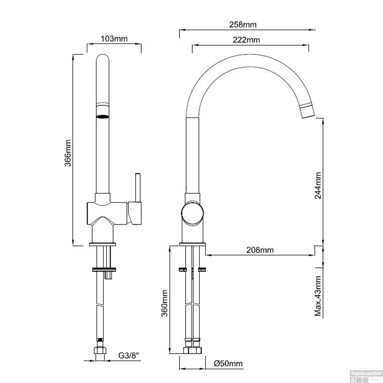 - Hoogte uitloop: 24.4 cm