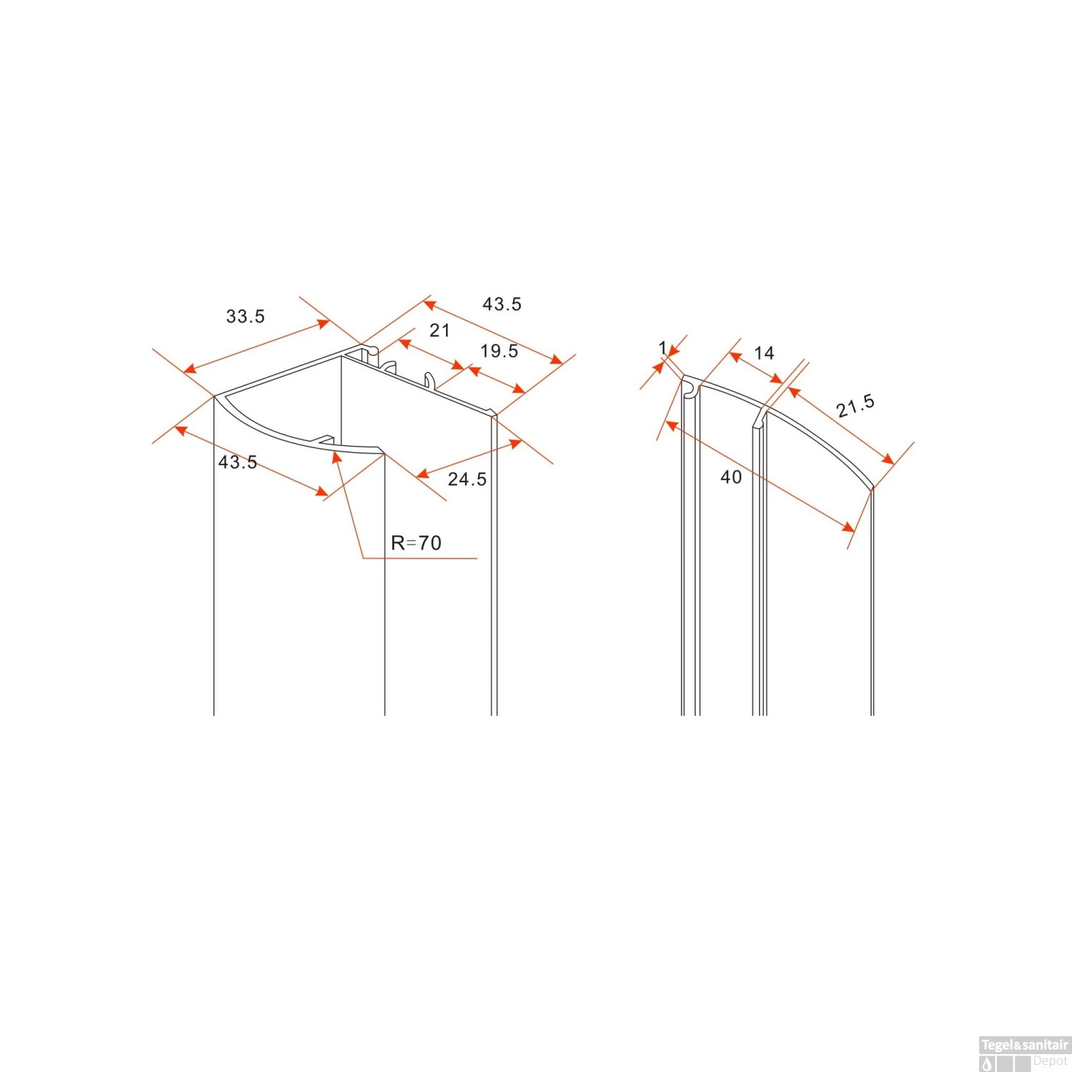 Specificaties BWS Muurprofiel voor Glaswand dikte van 1 cm L=200 cm: