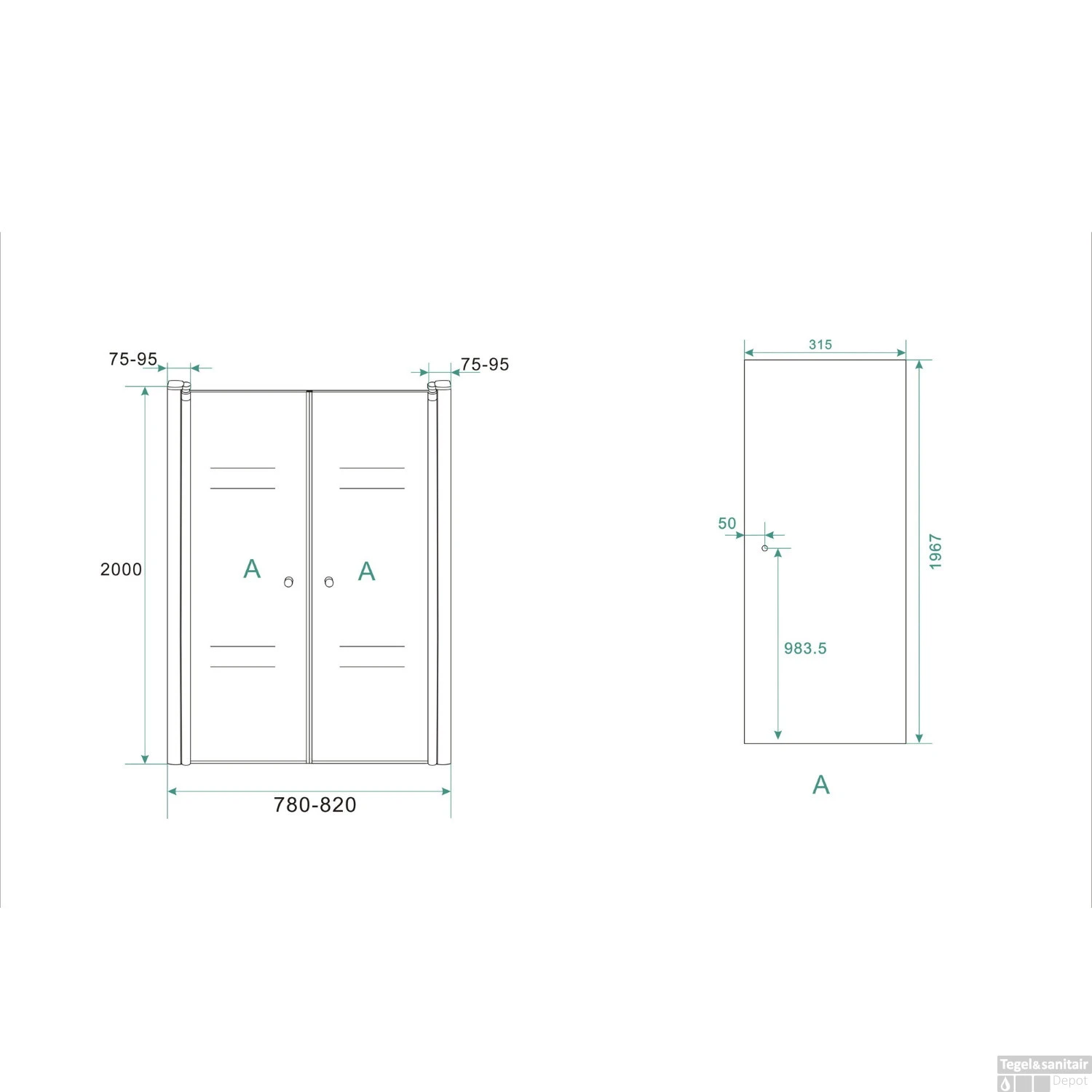 BWS Nisdeur met Pendeldeuren 80×200 cm 6mm NANO coating