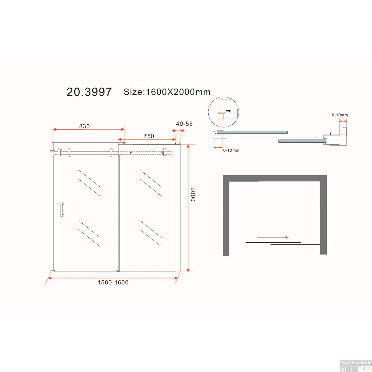 Specificaties BWS Nisdeur Schuifbaar 2-Delig 160×200 cm 8 mm Nano Coating Chroom: