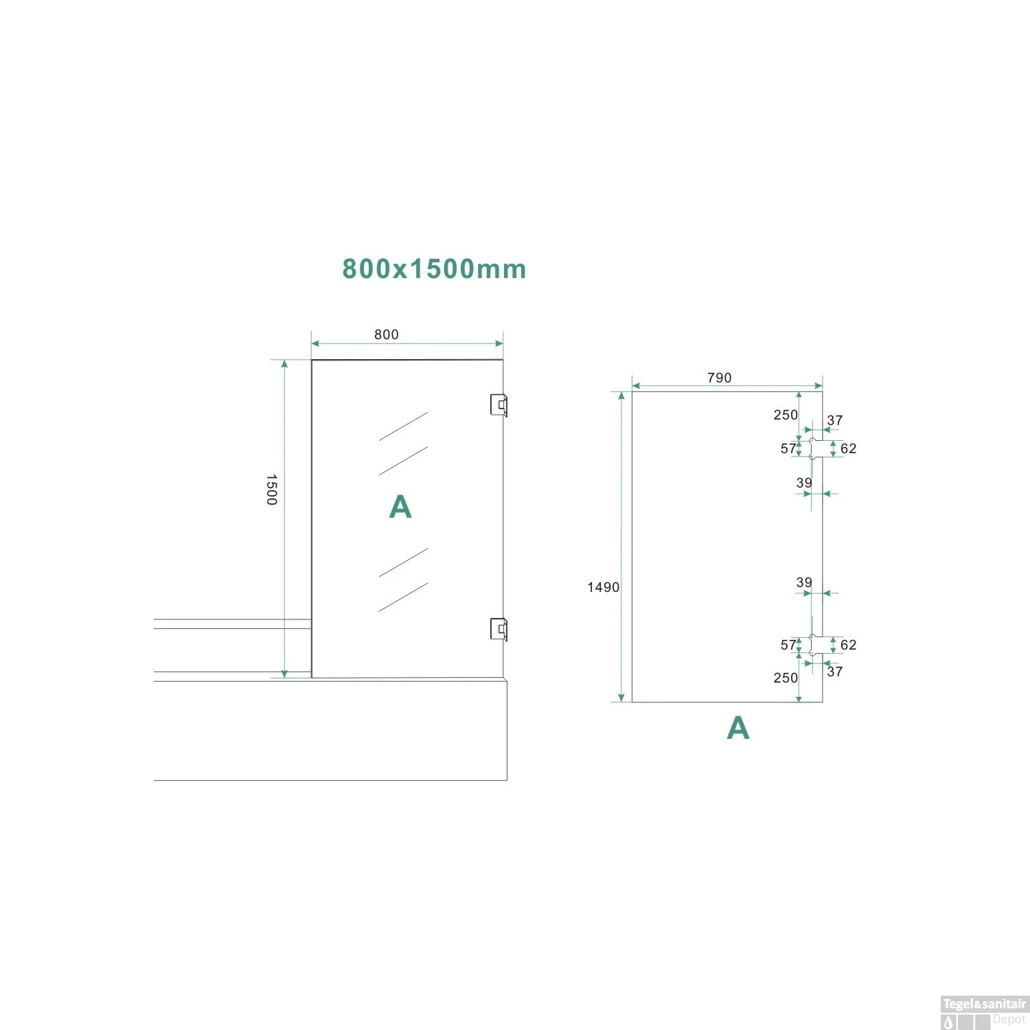 Specificaties BWS Profielloze Badwand Draaibaar 80×150 cm 6mm NANO Coating: