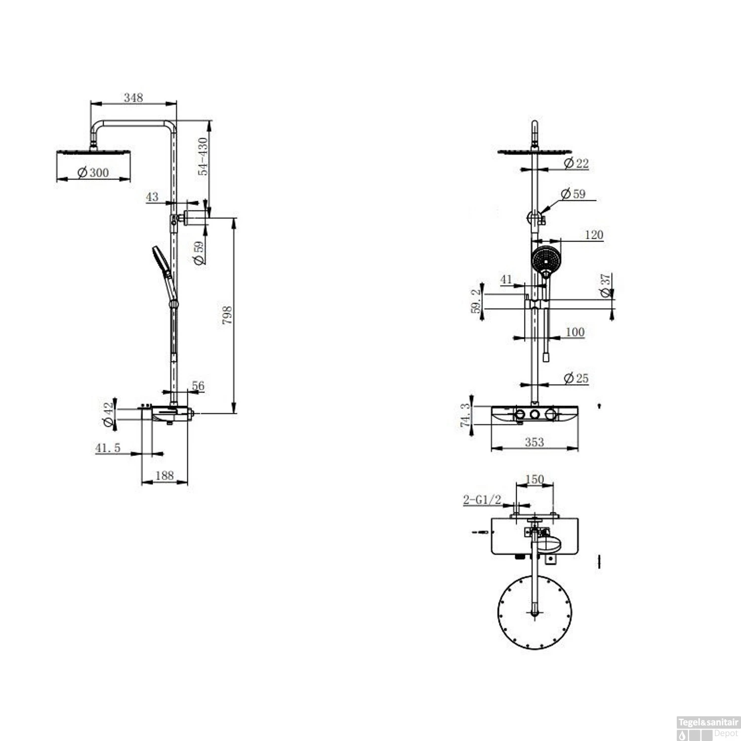 - Afmeting hoofddouche: 30 cm
