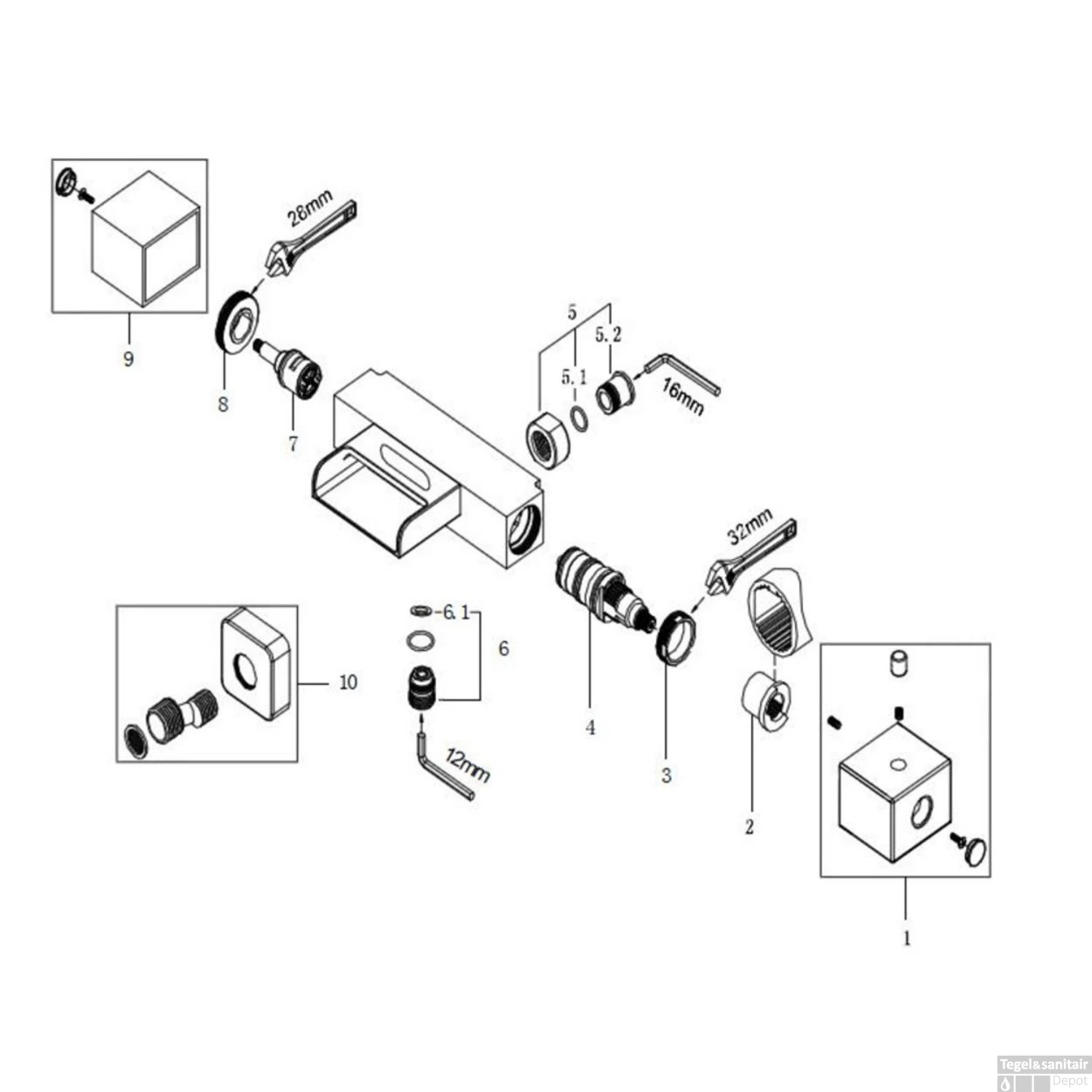 Specificaties BWS Thermostatische Badkraan Square met Waterval HOH 15 cm Chroom:
