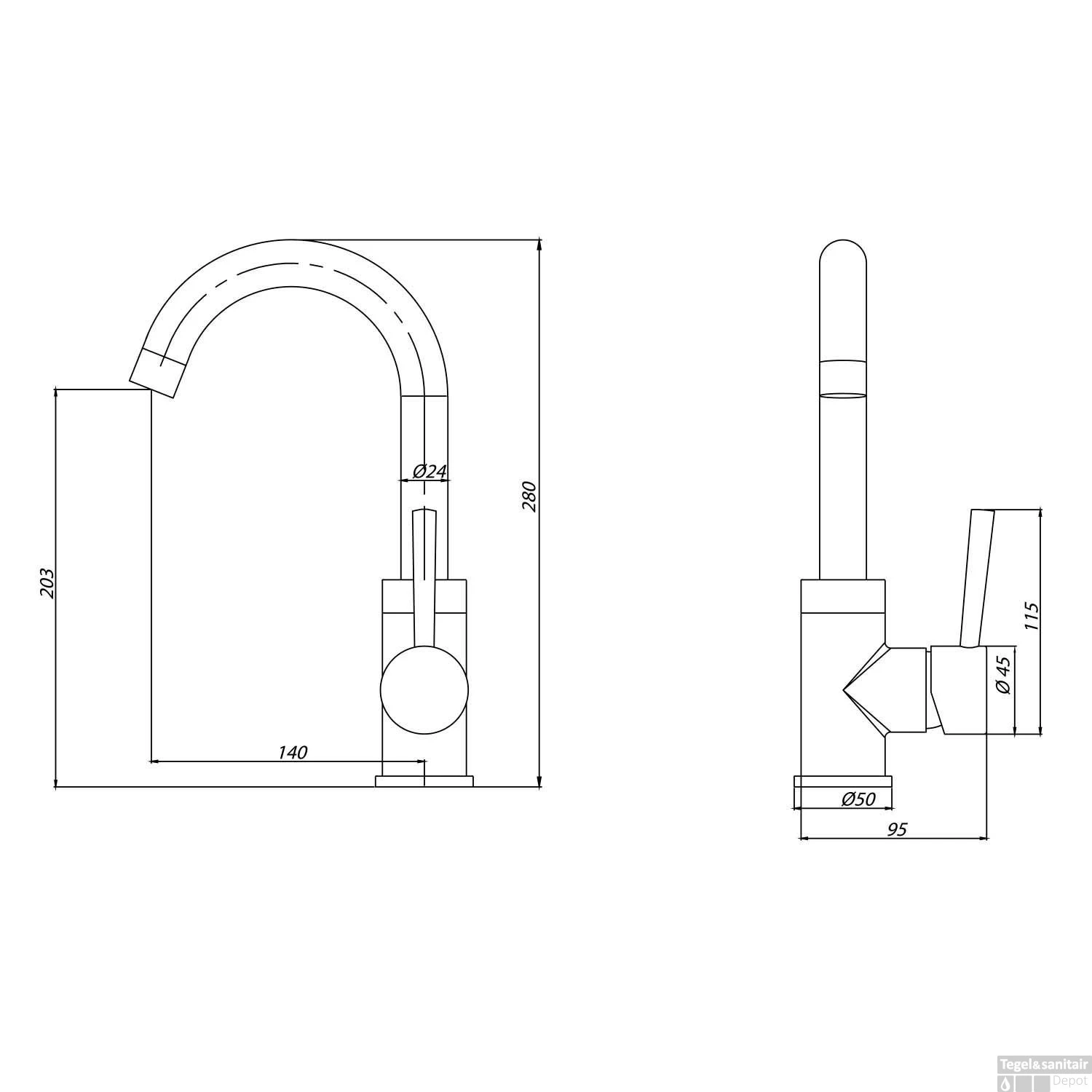Specificaties Wastafelmengkraan Boss & Wessing Colorato Ensy Gebogen Uitloop Gunmetal: