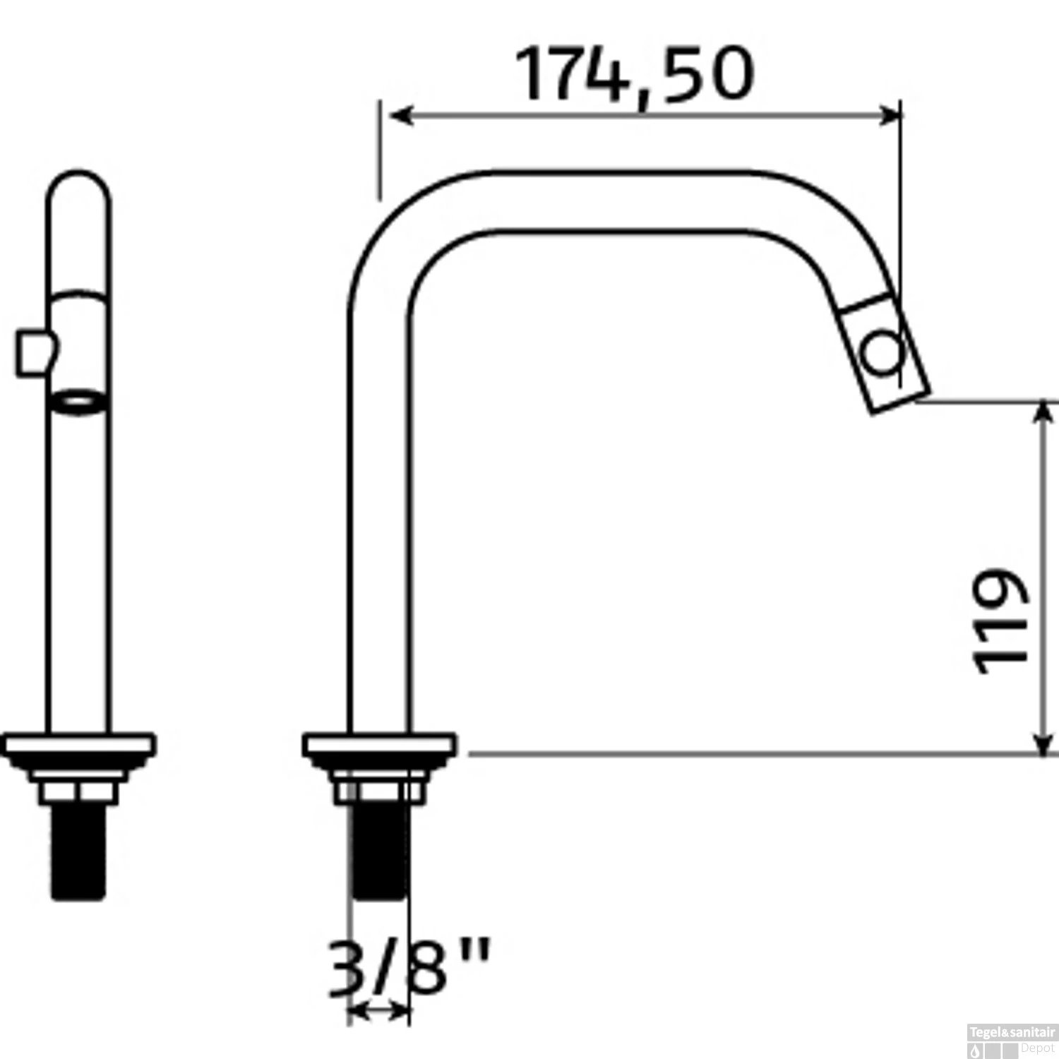 Specificaties Clou Kaldur Fonteinkraan Links Lange Uitloop Staand Chroom: